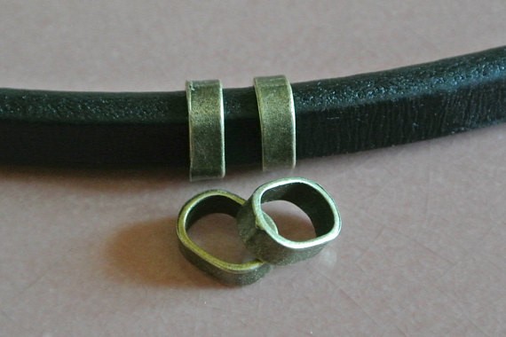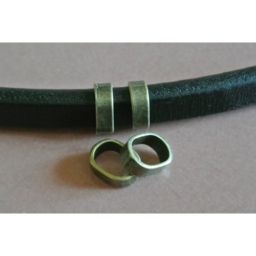 Lot de 10 perles passantes bronze très sobres pour cordon regaliz, dimensions : 13 x 10 x 4 mm, trou : 10 x 7 mm, en métal couleur bronze